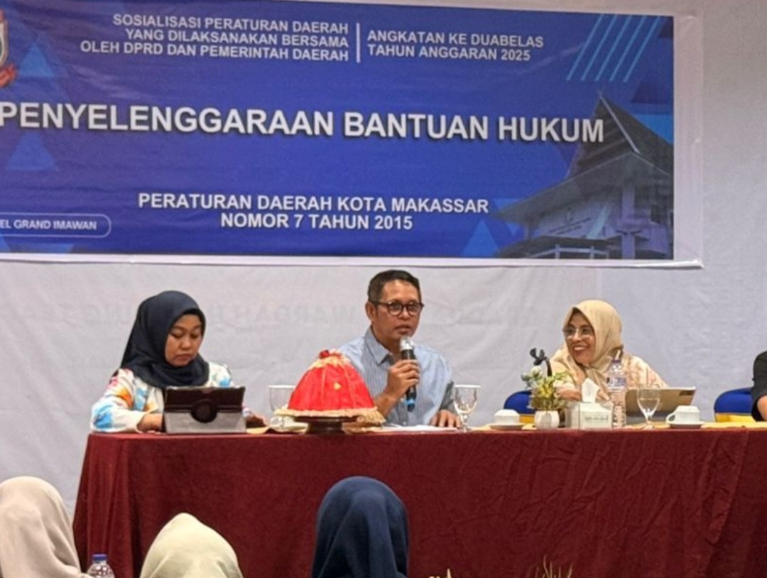 SPASISULSEL.COM — DPRD Kota Makassar terus memperkuat komitmennya dalam memastikan keadilan dapat diakses oleh seluruh lapisan masyarakat. Hal itu diwujudkan melalui kegiatan Sosialisasi Peraturan Daerah (Perda) Nomor 7 Tahun 2015 tentang Penyelenggaraan Bantuan Hukum yang digelar di Hotel Grand Imawan Makassar, Minggu (16/11/2025).