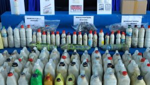 Ditpolair mengamankan ratusan barang bukti berupa material peledak dan perlengkapan untuk melakukan pengeboman ikan: 11 karung pupuk 25 kg, 89 jerigen bahan peledak, 64 botol bom rakitan siap ledak, 369 detonator, 74 potong sumbu berbagai ukuran, 2 kompresor, 2 gulung selang kompresor, 2 pasang kaki katak, 2 dakor, 18 bungkus bahan campuran peledak lainnya.