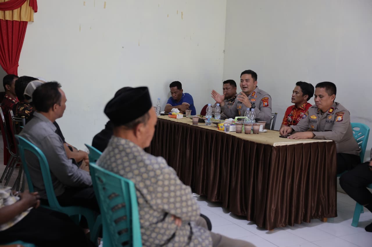 Untuk meredam potensi gesekan lanjutan, Kapolres memimpin pertemuan besar dengan seluruh kepala desa, kepala dusun, lurah, tokoh adat, tokoh agama, serta ormas.