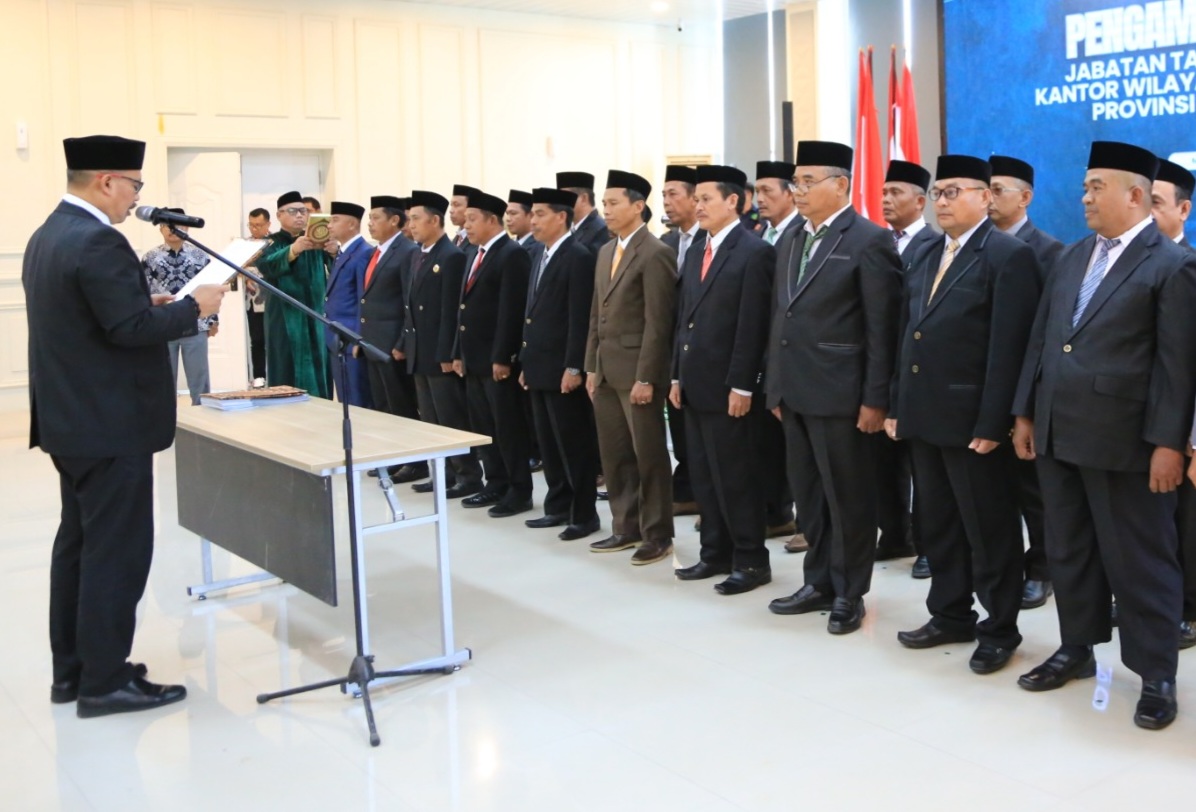 SPASISULSEL.COM — Makassar, (Kemenag Sulsel) — Kantor Wilayah Kementerian Agama Provinsi Sulawesi Selatan melaksanakan Pengambilan Sumpah Jabatan dan Pelantikan Pejabat Kepala Kantor Urusan Agama (KUA) di Aula Lantai 2 Kanwil Kemenag Sulsel, 27 November2025. Sebanyak 23 pejabat resmi dilantik dan dikukuhkan untuk memenuhi tugas baru di berbagai kecamatan di Sulawesi Selatan.