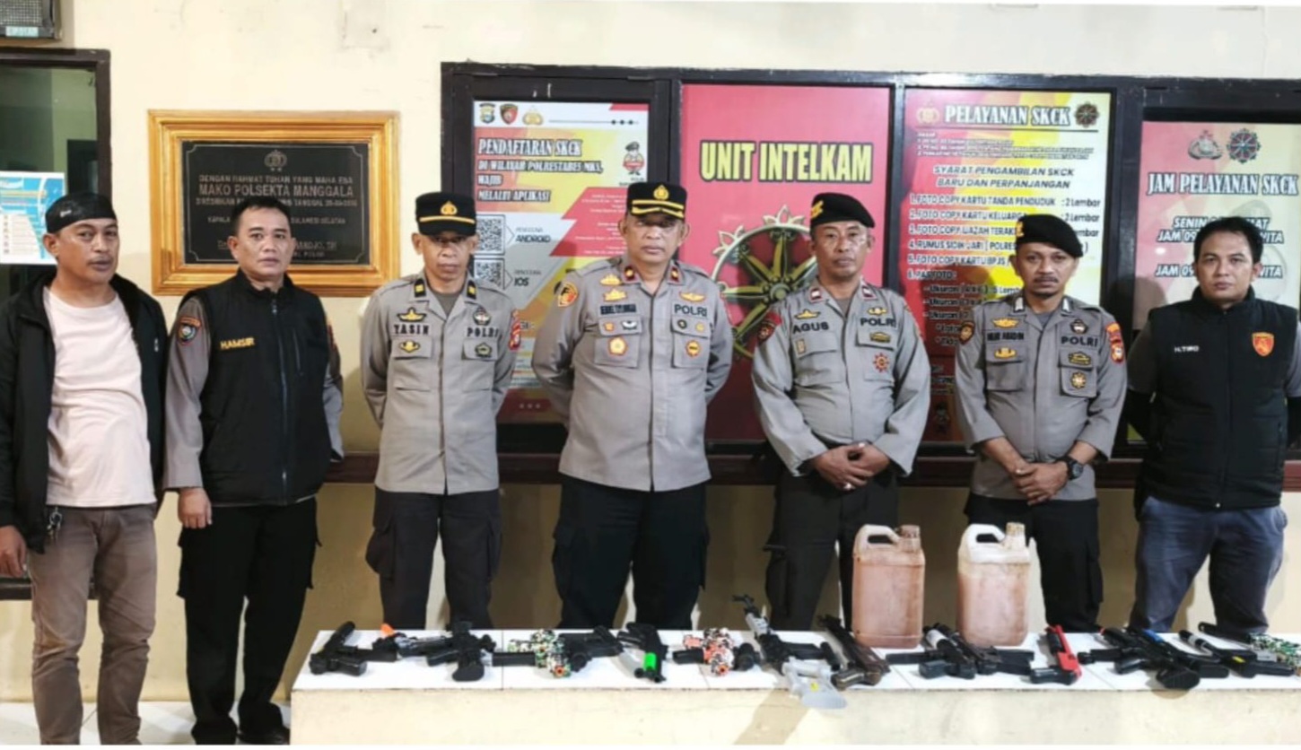 Dalam patroli tersebut, petugas berhasil mengamankan sejumlah barang yang dinilai berpotensi mengganggu ketertiban masyarakat. Di antaranya lima unit kendaraan roda dua yang menggunakan knalpot brong, dua jerigen berkapasitas lima liter berisi minuman keras tradisional jenis ballo, serta beberapa mainan tembak-tembakan yang digunakan saat konvoi di jalan.