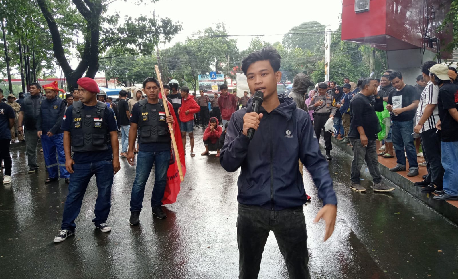 Massa menggeruduk Polda Sulawesi Selatan Mereka mendesak kepolisian menuntaskan pengusutan kasus korupsi yang ada dilingkungan pemerintah Daerah (Pemda) kabupaten Soppeng Sulawesi Selatan