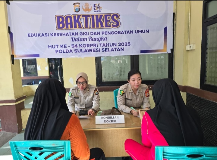 SPASISULSEL.COM — Makassar _ Dalam rangka memeriahkan Hari Ulang Tahun Ke-54 Korps Pegawai Republik Indonesia (KORPRI) Tahun 2025, Korpri Polda Sulawesi Selatan menggelar rangkaian kegiatan sosial yang menyentuh langsung kebutuhan masyarakat. Salah satu kegiatan utama yang digelar adalah Bakti Sosial Pelayanan Kesehatan di Klinik Biddokkes Panaikang Polda Sulsel serta Edukasi Kesehatan Gigi bagi siswa-siswi Sekolah Dasar di wilayah Panaikang,