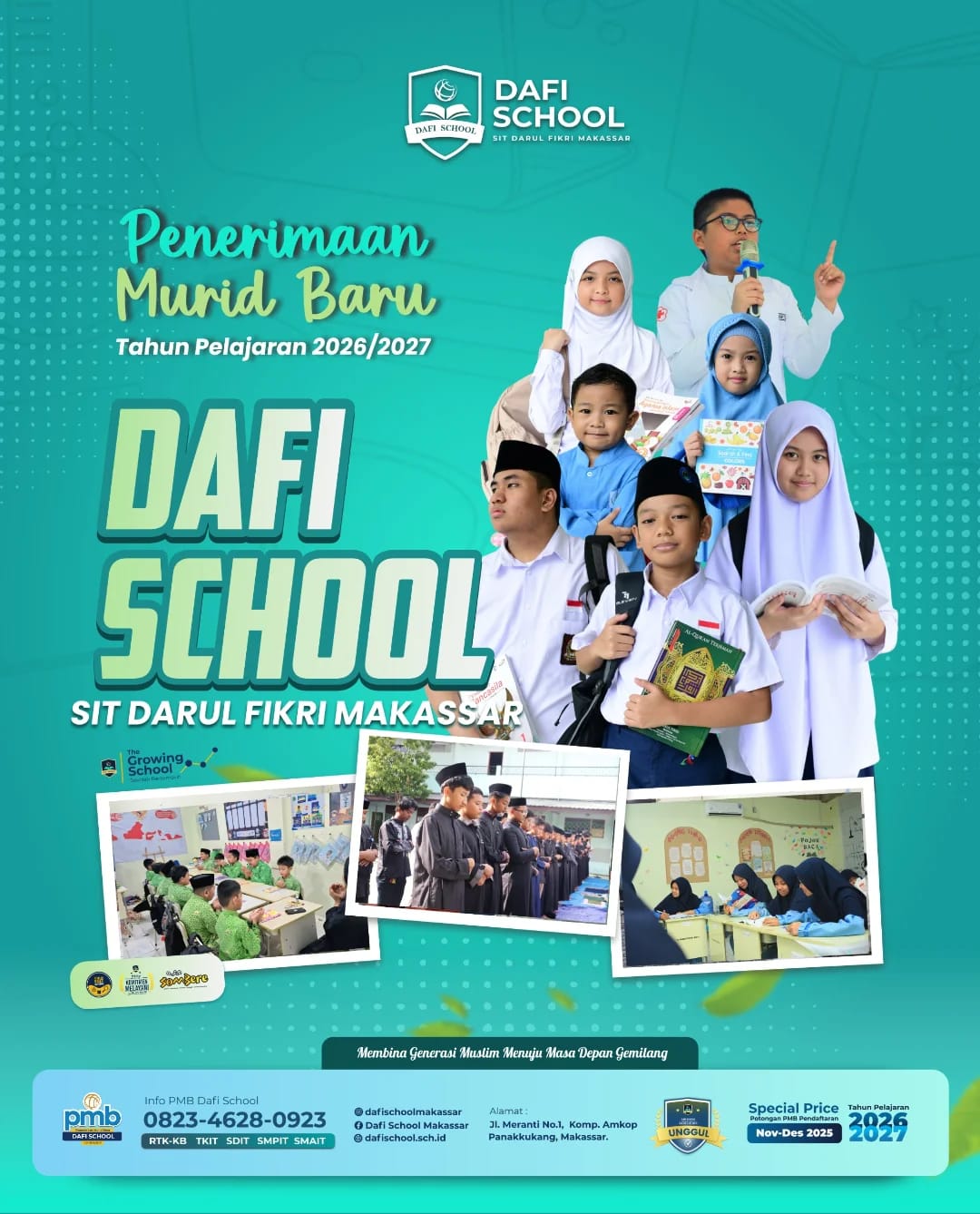 SPASISULSEL.COM — Makassar Sekolah Islam Terpadu (SIT) Darul Fikri Makassar resmi membuka pendaftaran Penerimaan Murid Baru (PMB) untuk Tahun Ajaran 2026–2027. Informasi tersebut diumumkan melalui media resmi sekolah, baik secara online maupun langsung di lingkungan sekolah.