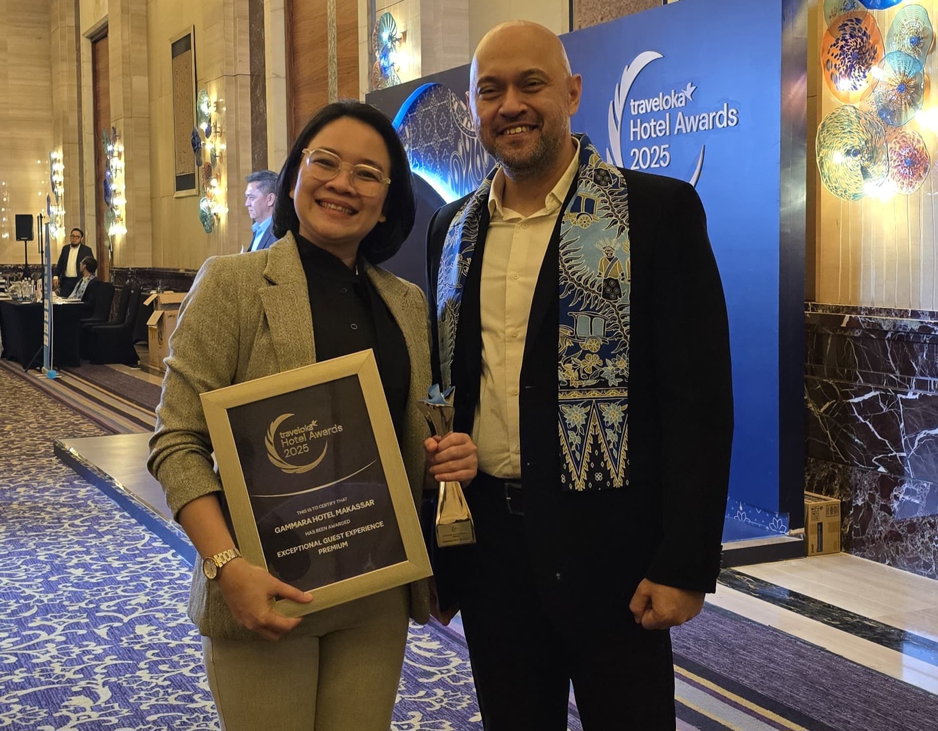 SPASISULSEL.COM – Hotel Gammara Makassar mengumumkan pencapaian prestisiusnya sebagai peraih penghargaan “Exceptional Guest Experience Premium 2025”yang di selenggarakan oleh traveloka pada tanggal 14 November 2025 di Hotel Kempinski Grand Ballroom .