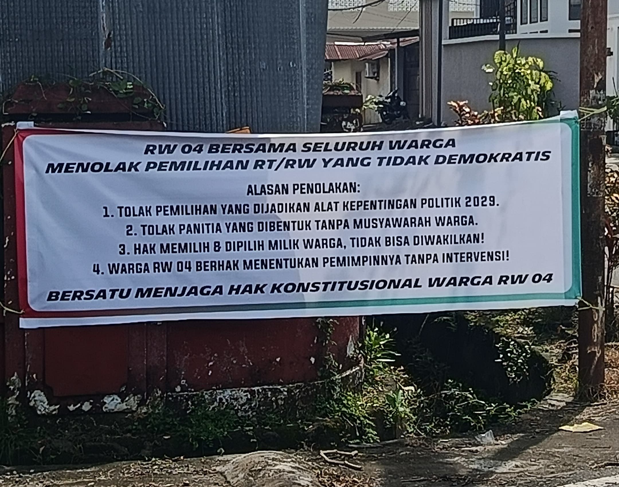 Keempat, warga menyoroti adanya dugaan intervensi pihak luar yang dinilai terlalu dominan dalam proses persiapan pemilihan. Kondisi tersebut dianggap menggerus kedaulatan warga dalam menentukan pemimpin lingkungan mereka sendiri.